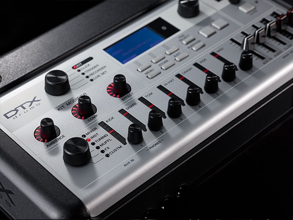 The DTX-PROX is a new flagship drum module that allows any drummer to intuitively customize its high quality sounds. Featuring real sampled drum sounds and real room ambience, sampled in world renowned studios, KIT MODIFIER knobs that allow you to easily and dramatically change sounds with a simple turn, and LED rotary faders that allow you to intuitively change any settings, the DTX-PROX gives form to your inner drumming creativity.