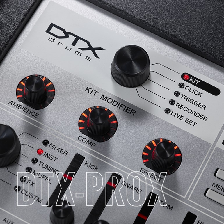 The DTX-PROX is a new flagship drum module that allows any drummer to intuitively customize its high quality sounds. Featuring real sampled drum sounds and real room ambience, sampled in world renowned studios, KIT MODIFIER knobs that allow you to easily and dramatically change sounds with a simple turn, and LED rotary faders that allow you to intuitively change any settings, the DTX-PROX gives form to your inner drumming creativity.