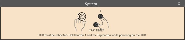 Druk tegelijkertijd op de knoppen TAP/TIME en USERMEMORY1 terwijl u de THR inschakelt.