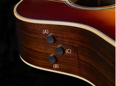 Battery box integrated into the end-pin jack. This requires fewer holes in the body, thus reducing acoustic sound loss. Connect the cable from the jack to a PA or amp to use as an acoustic electric guitar.