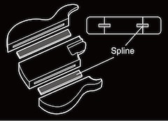 Made of hard maple the splines deliver richer body resonance that comes close to that of a one-piece body. Also, mounting the bridge and neck to the center slab ensures the transfer of more string vibration energy to the body.