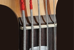The metal nut is made from the same material as the frets to deliver an open string sound that is closer to that of a fretted note. Compared to plastic or bone, nickel silver is more efficient at transferring string vibration.