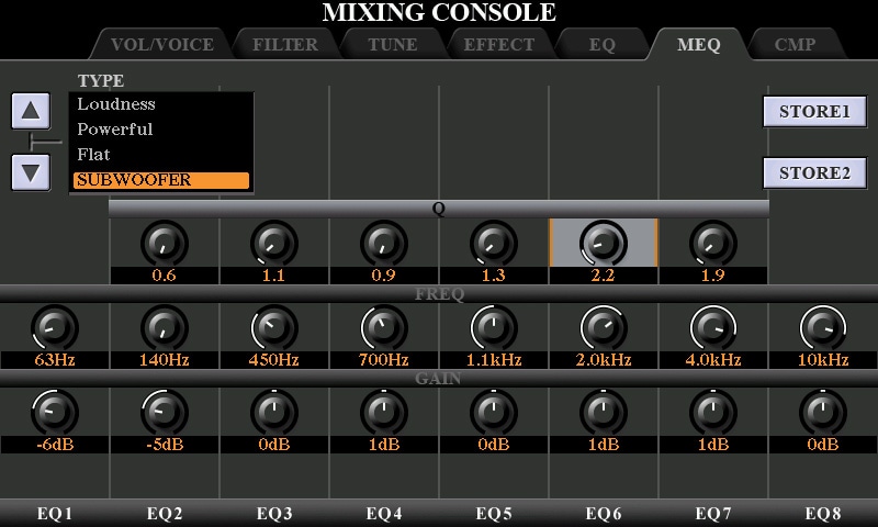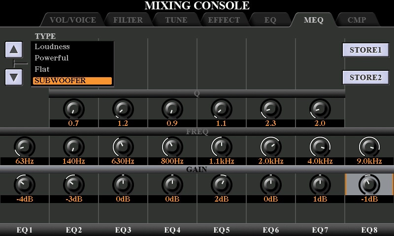 For the PSR-A5000/SX900/SX700/SX600/S975/775, select "With Subwoofer" from the Master EQ presets.