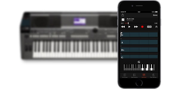 Draadloze verbinding tussen uw iOS-apparaat en uw instrument zorgen dat u de audioweergave van de song naar het ondersteunde instrument kunt sturen, zodat u deze via de luidsprekers van het instrument kunt beluisteren. De Chord Tracker-app draagt ook de akkoordinformatie over naar het instrument. U kunt zelfs uw eigen spel als audiobestand opnemen op het iOS-apparaat en het met anderen delen via e-mail (AAC- of WAV-format).
