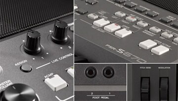 De PSR-S670 beschikt over twee toewijsbare live-controllers, een modulatiewiel en twee toewijsbare voetschakelaaringangen, om ervoor te zorgen dat u volledige controle hebt over voices, stijlen, effecten en andere functies tijdens liveoptredens.