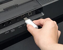 Via de USB TO DEVICE-aansluiting van het instrument kunt u uw instellingen en songs laden en opslaan op een USB-geheugenstick, alsook gegevens van uw pc overdragen.