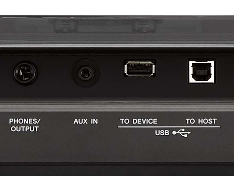 Sluit een externe audiospeler aan op de AUX In-aansluiting en speel mee met uw favoriete nummers. De ingebouwde geavanceerde melodieonderdrukker verlaagt het volume van de zang- en melodielijnen van de originele opnamen, waardoor die partij vrijkomt om door u gespeeld of gezongen te worden**.