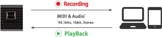 Met de USB TO HOST-aansluiting kunt u verbinding maken met een computer of draagbaar apparaat en audio van hoge kwaliteit opnemen zonder dat u een extra interface nodig hebt. Er is een grote verscheidenheid creatieve en educatieve iOS-apps beschikbaar via de App Store*