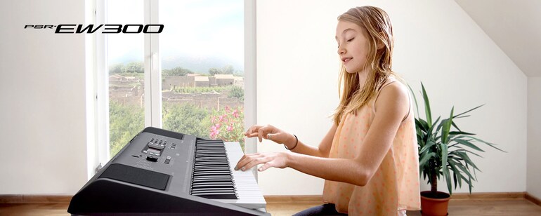 De PSR-EW300 is voorzien van veelzijdige functies, een krachtig geluidssysteem en een breed, 76 toetsen tellend aanslaggevoelig toetsenbord en is daardoor de slimme keuze voor de beginnende pianist.