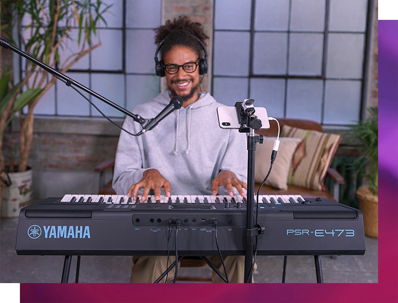 Een verscheidenheid aan aansluitmogelijkheden biedt alle ondersteuning die u nodig hebt voor oefenen, spelen en optreden. Sluit een microfoon aan om te zingen terwijl u speelt, gebruik de Rec'n'Share-app om uw muziek met de wereld te delen en sluit PA-systemen aan om op het podium op te treden.