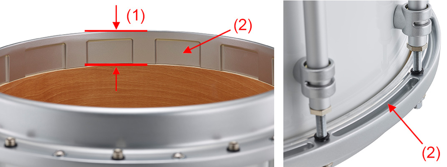 Een grotere radius aan de bovenkant van de rand vermindert schade aan drumstokken bij het spelen van rimshots (wanneer het vel en de rand gelijktijdig worden geraakt). Een dikkere rand verhoogt ook de duurzaamheid en verbetert de rimshot-klank.