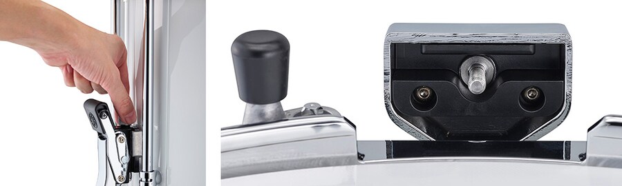 De afmetingen van het snaremechaniek en de vorm van de knop zijn herzien om speling te verminderen en de bediening te verbeteren. Het herziene ontwerp heeft ook een nieuwe snaregeleider die het bevestigen van de snare eenvoudiger dan ooit maakt.