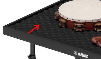 The top surface of the table is covered with a wave-cut urethane pad that minimizes noise when mallets, hand and small percussion instruments, or other items are placed on the table.
