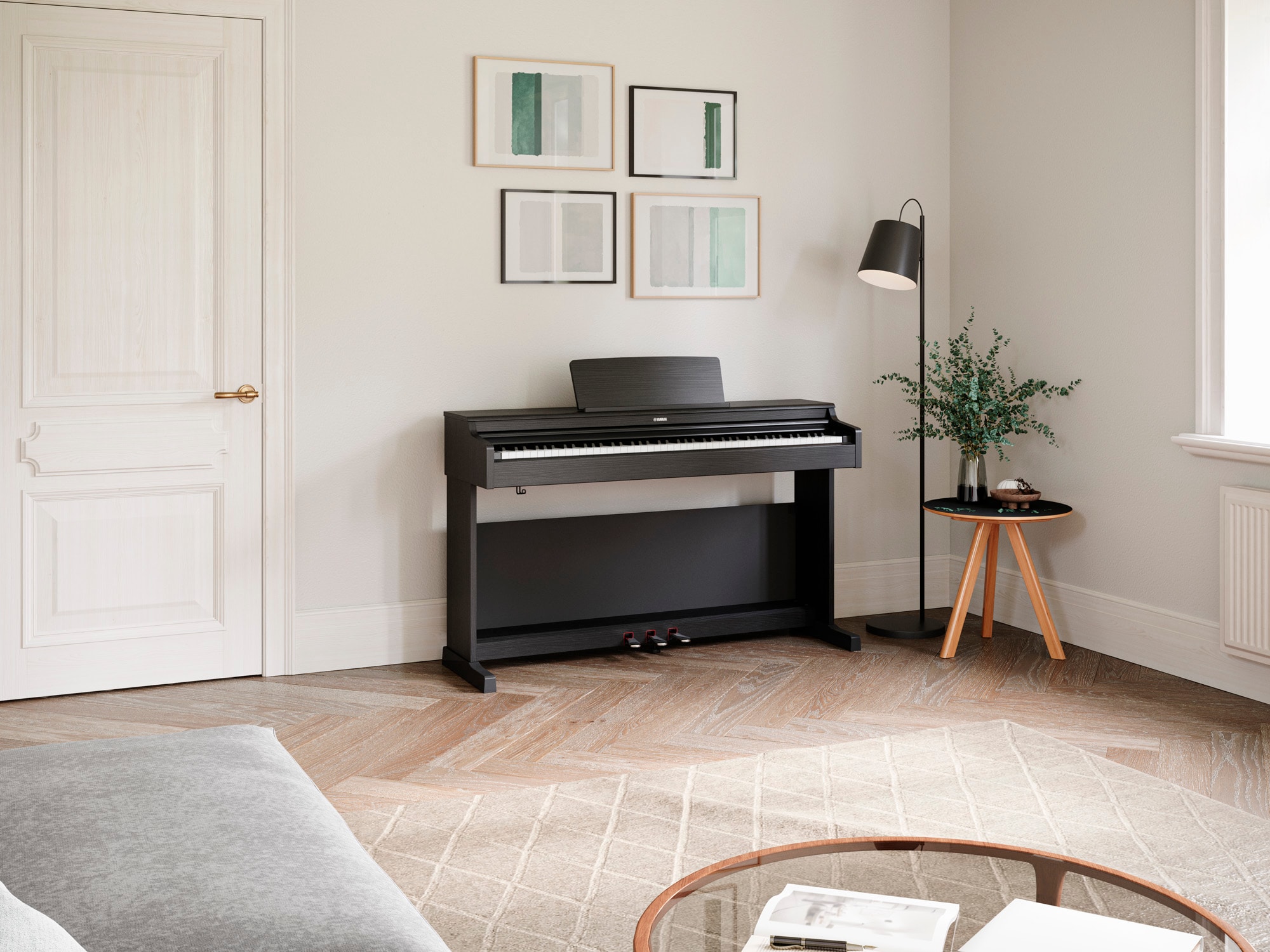 Standaardformaat, 88-toetsenmodel van de ARIUS digitale piano met gewogen toetsenbord. Met Yamaha's CFX-concertvleugelgeluid als ingebouwde voice, ervaart u een rijk, expressief speelgevoel met het GHS-toetsenbord. Inclusief nieuw uitgeruste oorvriendelijke functies en compatibiliteit met Yamaha's Smart Pianist-app.