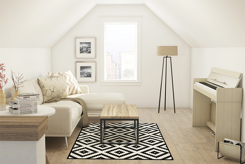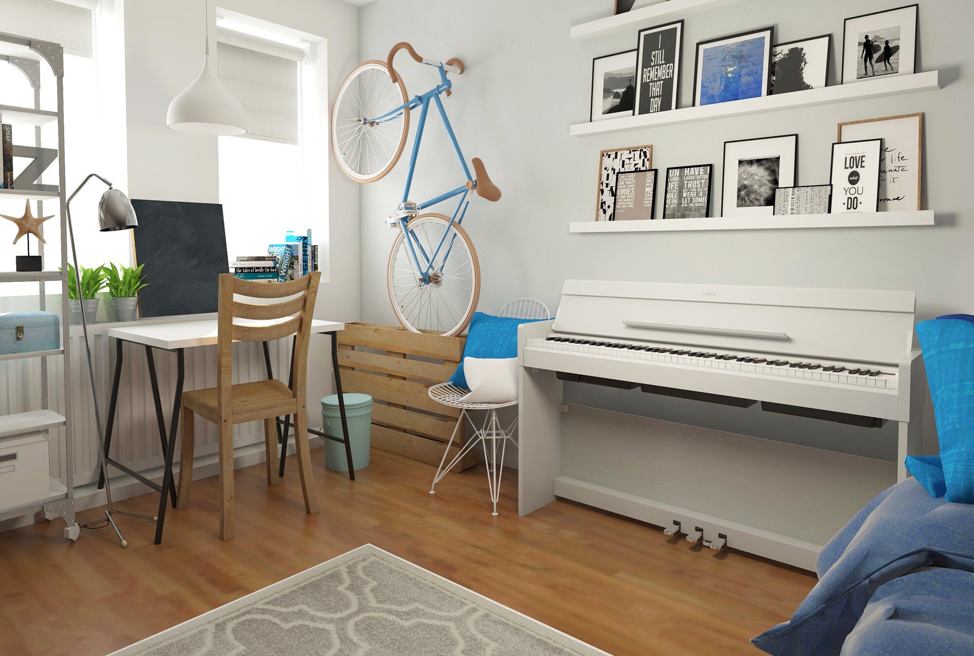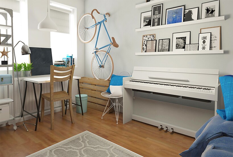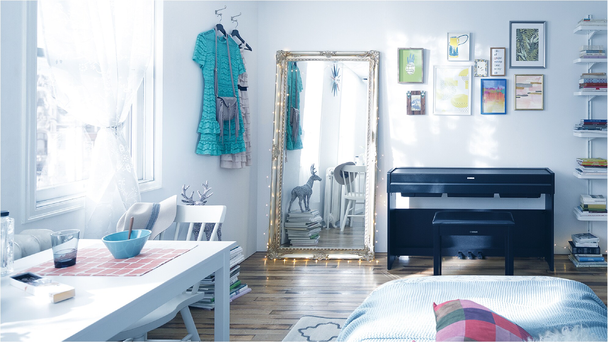 Bij lage volumes zijn de lage en hoge noten in het geluid moeilijk te horen, maar aangezien de YDP-S34 is uitgerust met Intelligent Acoustic Control (IAC), waarbij het geluid automatisch wordt aangepast, kunt u bij elk volume genieten van uitstekend uitgebalanceerde pianoklanken.