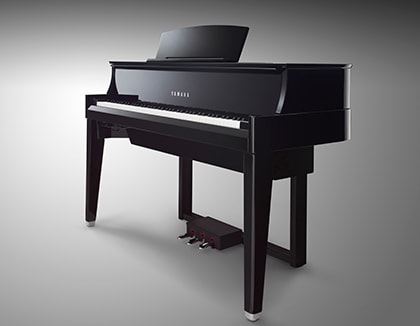 - De onderscheidende elegante lijnen van een Yamaha-vleugel