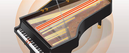 In een vleugel resoneren snaren en geluid door de hele kast van het instrument, wat resulteert in rijke klankreflecties die de luisteraar met geluid omhullen. Niet alleen de snaren die u bespeelt trillen, maar ook de andere snaren gaan klinken in reactie op de snaren die u bespeelt. Daarom is pianogeluid zo complex en rijk.