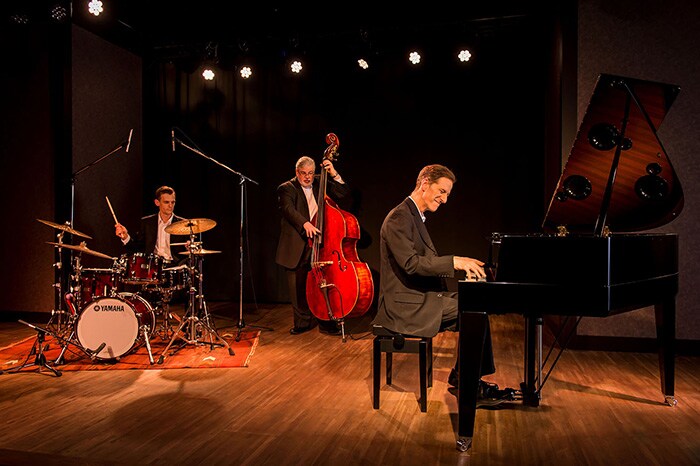 Als u een akoestische piano bespeelt, resoneert het hele instrument. U voelt dit onbewust, via uw voeten op de pedalen en via uw vingers op het toetsenbord. Het is deze subtiele fysieke sensatie die door Yamaha's Tactile Repons System (TRS; tactiele aanspreekbaarheidssysteem) wordt gereproduceerd. Deze digitale technologie brengt de natuurlijke trillingen over die door een vleugel worden voortgebracht, wat de emotionele energie tussen u en het instrument verenigt. Zelfs als u een hoofdtelefoon op hebt, kunt u TRS gebruiken om het realisme van de speelbeleving te vergroten.