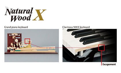 - NWX-toetsenbord (Natural Wood X; natuurlijk hout) met synthetisch ebbenhouten en synthetisch ivoren toetsbeleg (hout is gebruikt bij de witte toetsen)