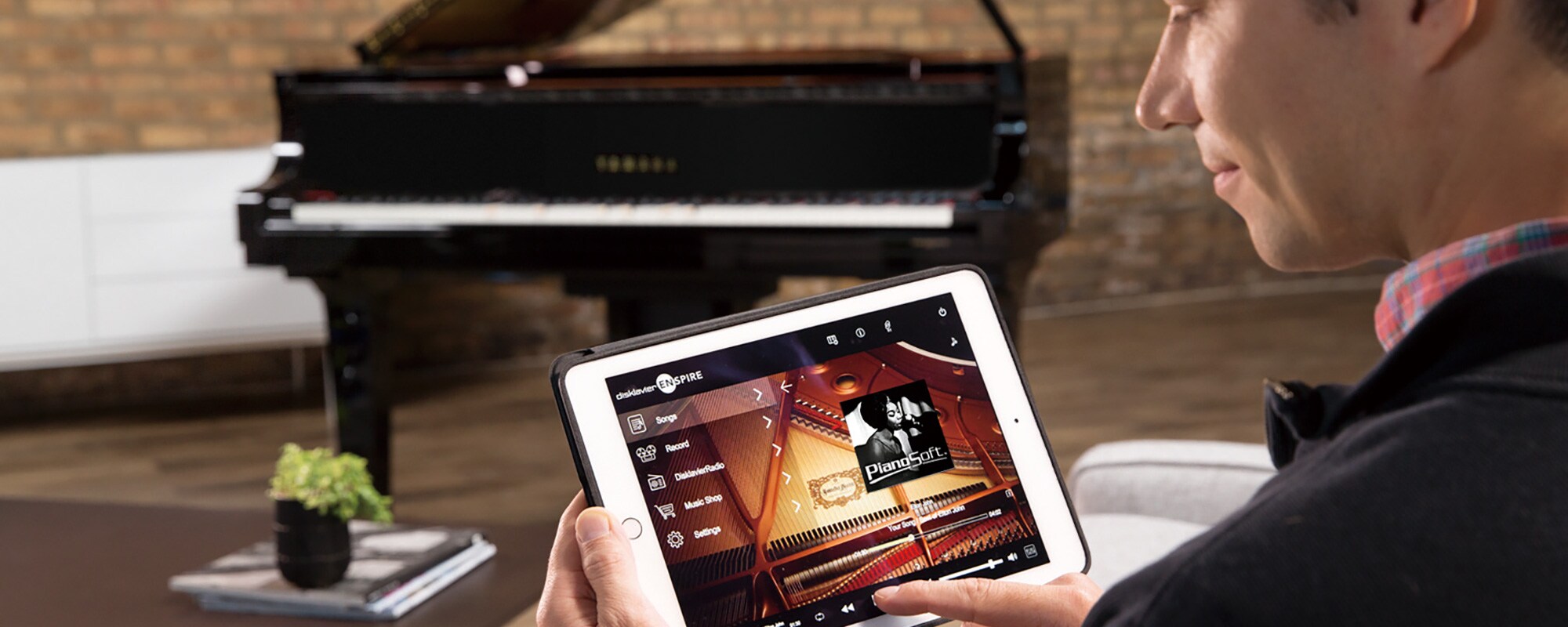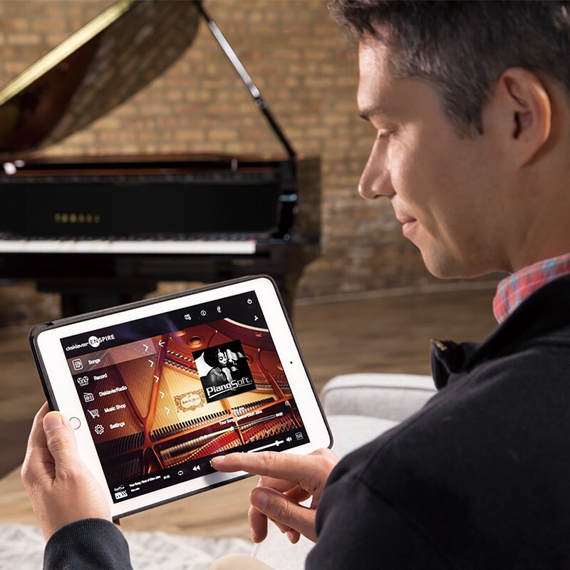 Met de ENSPIRE Controller-app (voor iOS of Android) kunt u uw Disklavier verbinden met een smartphone of tablet. Met de app kunt u eenvoudig songs selecteren en downloaden of uw eigen spel opnemen.