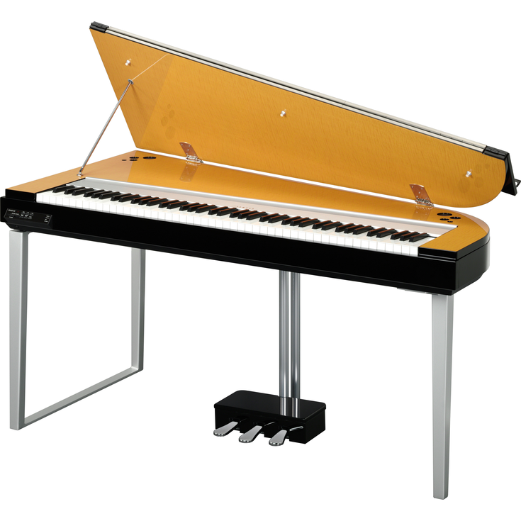 True piano sound in a modern, attractive grand piano shape cabinet.
