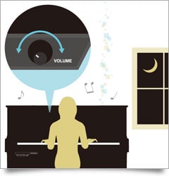 There are times when the full sound of an acoustic piano may not be appreciated by your family or neighbors. For these situations, simply activate the TransAcoustic™ function and the hammers will no longer strike the strings. Non-contact sensors under each individual key detect your keystroke depth, velocity and timing and send this information to the tone generator. Just adjust the volume and hear the digital sound of your piano performance coming from the entire instrument. Naturally, there is no need for headphones or external amplification.