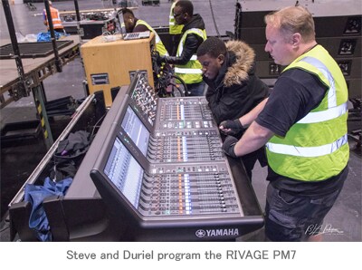 In monitor world, Duriel was particularly impressed with the speed and ease of use of the RIVAGE PM7, as well as the high bus count. “As a monitor engineer speed is important, so being able to quickly send to my monitor mixes definitely helped in being able to deliver on the day,” he says.