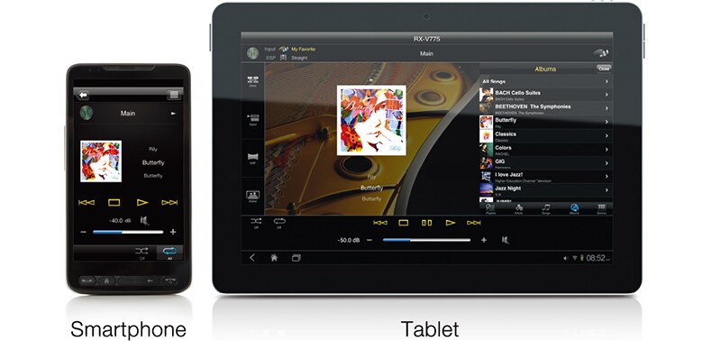 Met deze gebruiksvriendelijke app schakel je je AV-receiver in en uit, regel je het volume, verander je van ingang of DSP-modus, en nog veel meer. Gewoon vanaf je iOS- of Android™-apparaat. Je kunt kiezen uit 23 verschillende talen. De interface pas je makkelijk aan door pictogrammen die je niet nodig hebt te verbergen en functies eventueel een andere naam te geven. Een versie voor tablets is er ook.