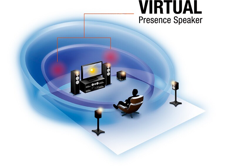 CINEMA DSP 3D biedt een breed, hoog en dicht geluidsveld. HD Audio wordt ondersteund, dus je kunt probleemloos je HD Audio-bronnen afspelen. De Virtual Presence Speaker is een functie die driedimensionaal geluid kan neerzetten zonder echt gebruik te maken van aanwezigheidsluidsprekers. Zo krijg je een rijk geluidsveld dat vrijwel overeenkomt met 7.1-kanaals surround sound, ook al heb je maar een 5.1-opstelling.