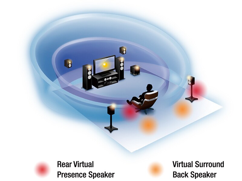 * Aansluiting op een aanwezigheidsluidspreker vooraan vereist. Dolby Atmos- en DTS: X-signalen kunnen niet worden gebruikt met deze virtuele functies.