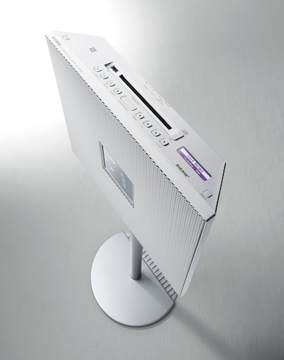 With a 9cm body and a half-moon shaped stand, you can position Restio right up against a wall. What’s more, the standalone style doesn’t require a shelf, so there are no restrictions on where you can put it. You can even remove the stand and hang it on a wall (requires an optional bracket AT-800). It’s the perfect way to match your music source to any room’s decor.