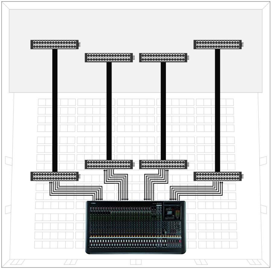 Because Dante uses logical routing instead of physical point-to-point connections, the network can be configured using available ports with just a few mouse clicks.