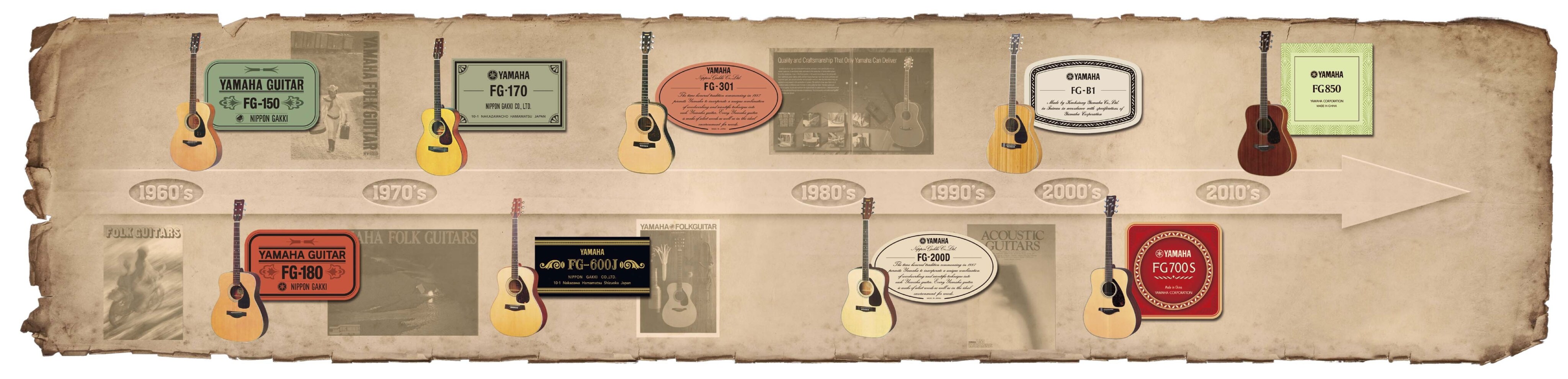De geschiedenis van Yamaha's FG-serie begon in 1966 met de introductie van de FG180 en FG150. In de 50 jaar sinds de introductie hebben we verschillende generaties FG's ontwikkeld en geproduceerd, die allemaal van de FG de ideale akoestische gitaar voor hedendaagse gitaristen hebben gemaakt. In totaal zijn er sinds 1966 meer dan 200 FG-modellen geweest.