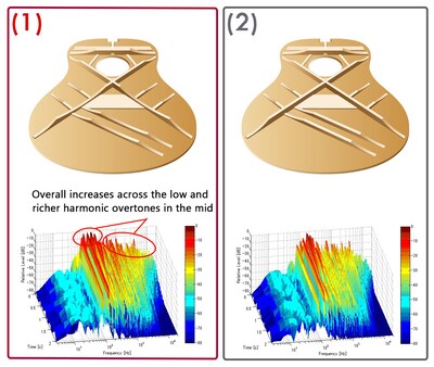 Een nieuwe FG heeft een luider en krachtiger geluid in het laag tot middenbereik, dankzij geavanceerde akoestische analysetechnologie ontwikkeld door de R&D-afdeling van Yamaha.De technici van Yamaha hebben dit geluid weten te realiseren door gebruik te maken van analyse en simulatie om tot het beste zangbalkjesontwerp te komen, zonder afhankelijk te zijn van traditie of giswerk.Deze analyse leidde tot de ontwikkeling van het nieuwe geschulpte zangbalkjespatroon, een nieuwe en ideale akoestische structuur die de duurzaamheid van het bovenblad behoudt en tegelijkertijd het geluid dat de Yamaha FG te bieden heeft optimaal naar buiten brengt.
