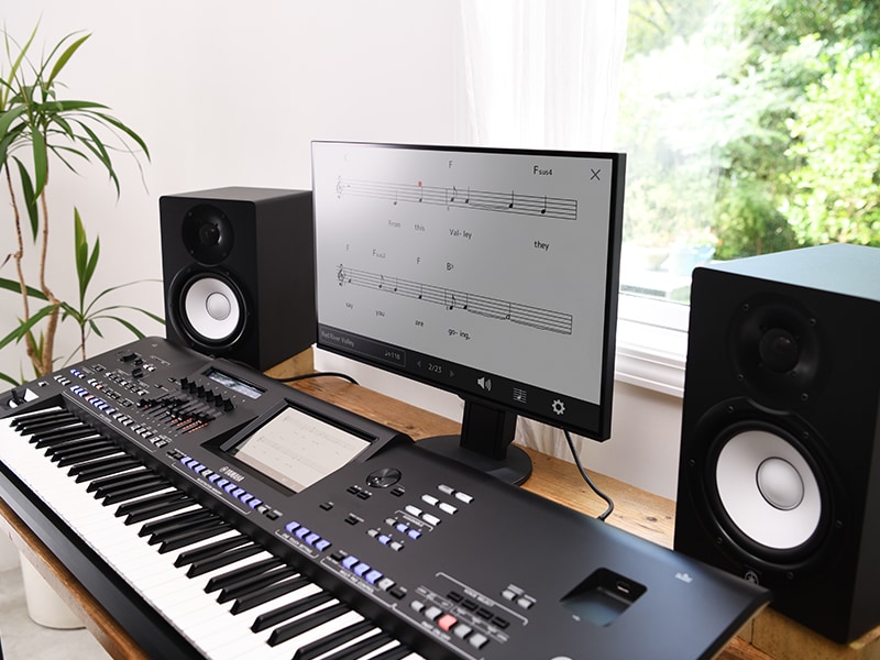Bekijk de songteksten van MIDI en audio op het Genos2-scherm of op een groot scherm dankzij de nieuwe HDMI-poort.