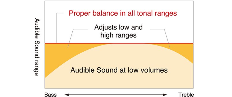 Bij lage volumes zijn de lage en hoge noten in het geluid moeilijk te horen, maar aangezien de YDP-S34 is uitgerust met Intelligent Acoustic Control (IAC), waarbij het geluid automatisch wordt aangepast, kunt u bij elk volume genieten van uitstekend uitgebalanceerde pianoklanken.