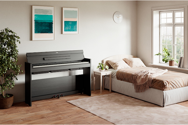 De pianokast heeft een smalle diepte waardoor u hem strak in elke kamer kunt opstellen, en zorgt voor een chique, stijlvol ontwerp dat uw woonruimte moeiteloos verbetert. Bovendien geeft het sluiten van de toetsenklep het instrument een vlak, bescheiden uiterlijk.