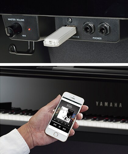 Op de USB to DEVICE-poort kunt u een USB-geheugenstick aansluiten en gebruiken als een ingebouwde piano-opnamestudio. U kunt uw spel als audiosongs rechtstreeks op de USB-geheugenstick opslaan. Deze songs worden opgeslagen volgens de WAV-indeling, dus u kunt ze terugluisteren via het ingebouwde luidsprekersysteem van het instrument. Of u kunt ze afspelen op een computer, overdragen naar een draagbaar media-apparaat of ze uploaden om ze met vrienden online te delen.