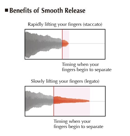 Met Yamaha's Smooth Release-technologie reproduceert de Clavinova de knisperende klank die te horen is bij staccato spel alsook het uitstervende geluid dat wordt geproduceerd bij het langzaam loslaten van de toetsen.