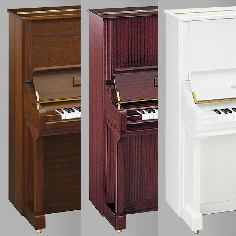 Naast de elegante, luxueuze gepolijste ebbenhouten afwerking, zijn er ook andere opties beschikbaar: een satijnen afwerking van Amerikaans walnoot die de mooie houtnerven benadrukt, een gepolijste mahonie afwerking en een stijlvolle witte afwerking. Kies de afwerking die het beste past bij de inrichting van je kamer of speelruimte. * Houd er rekening mee dat er natuurlijke verschillen kunnen zijn in de houtnerven en tinten, afhankelijk van de regio en het specifieke instrument.